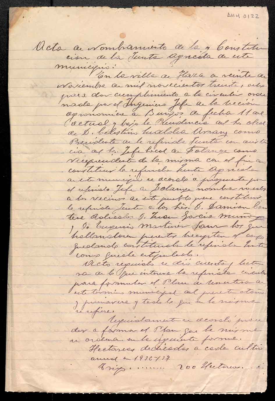 Acta de nombramiento y constitución de la Junta Agrícola de Haza.