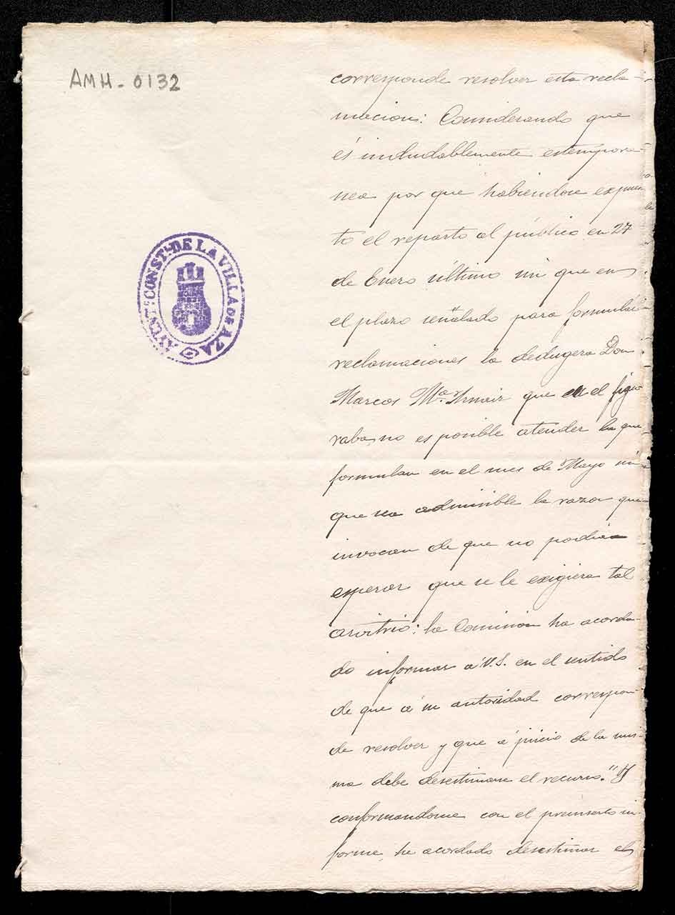 Carta del Ayuntamiento de Haza al alcalde de Aranda de Duero sobre una reclamación.