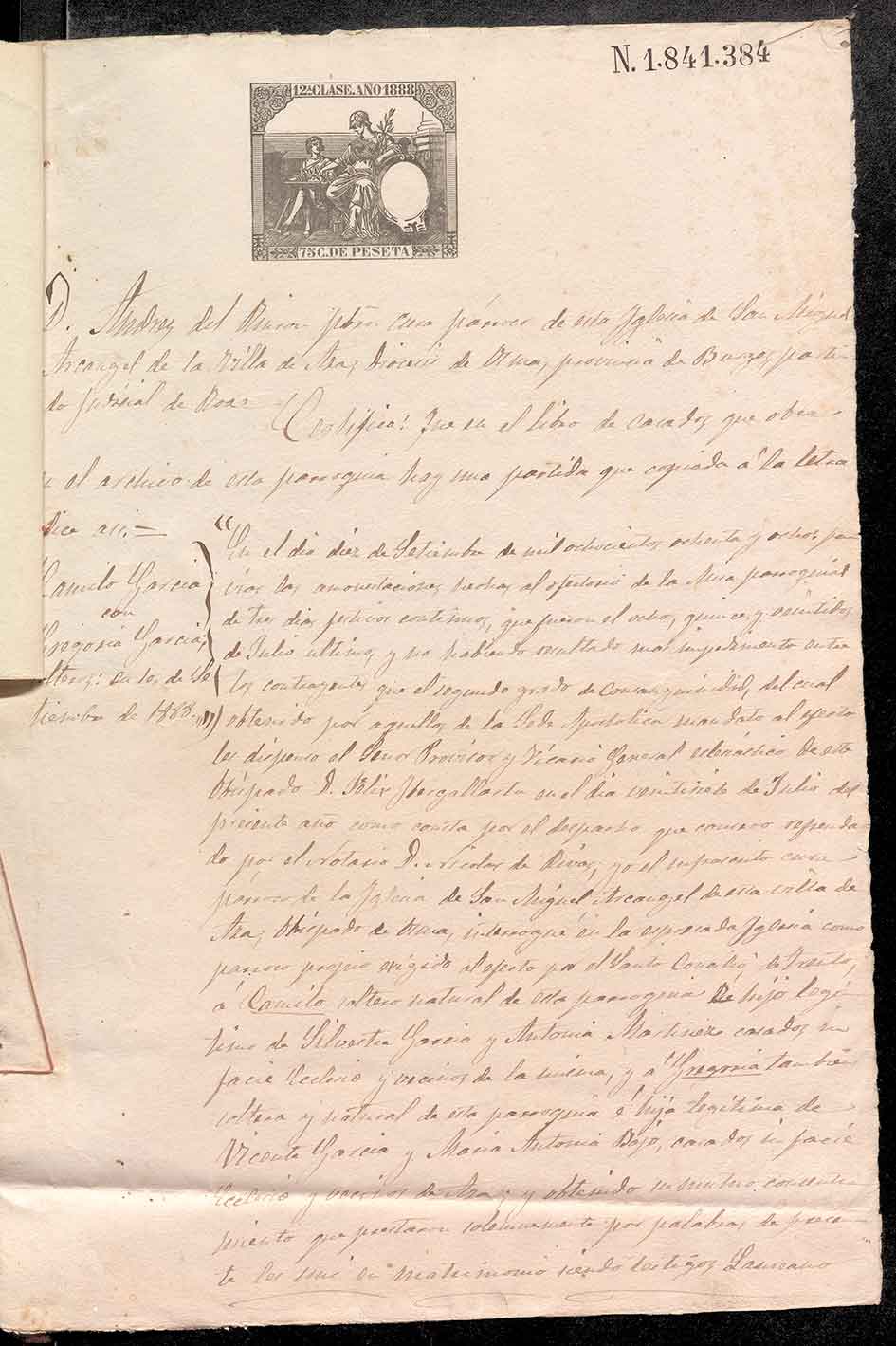 Legajo de partidas de matrimonios canónicos. Certificados del párroco de San Miguel.