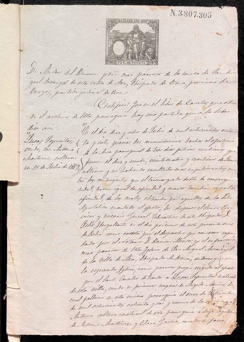 Legajo de partidas de matrimonios canónicos. Certificados del párroco de San Miguel.