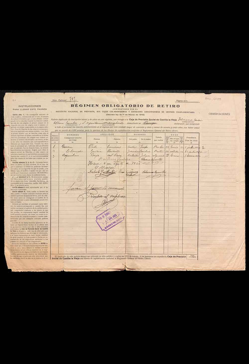 Padrón del Régimen obligatorio de retiro para varios vecinos de Haza.