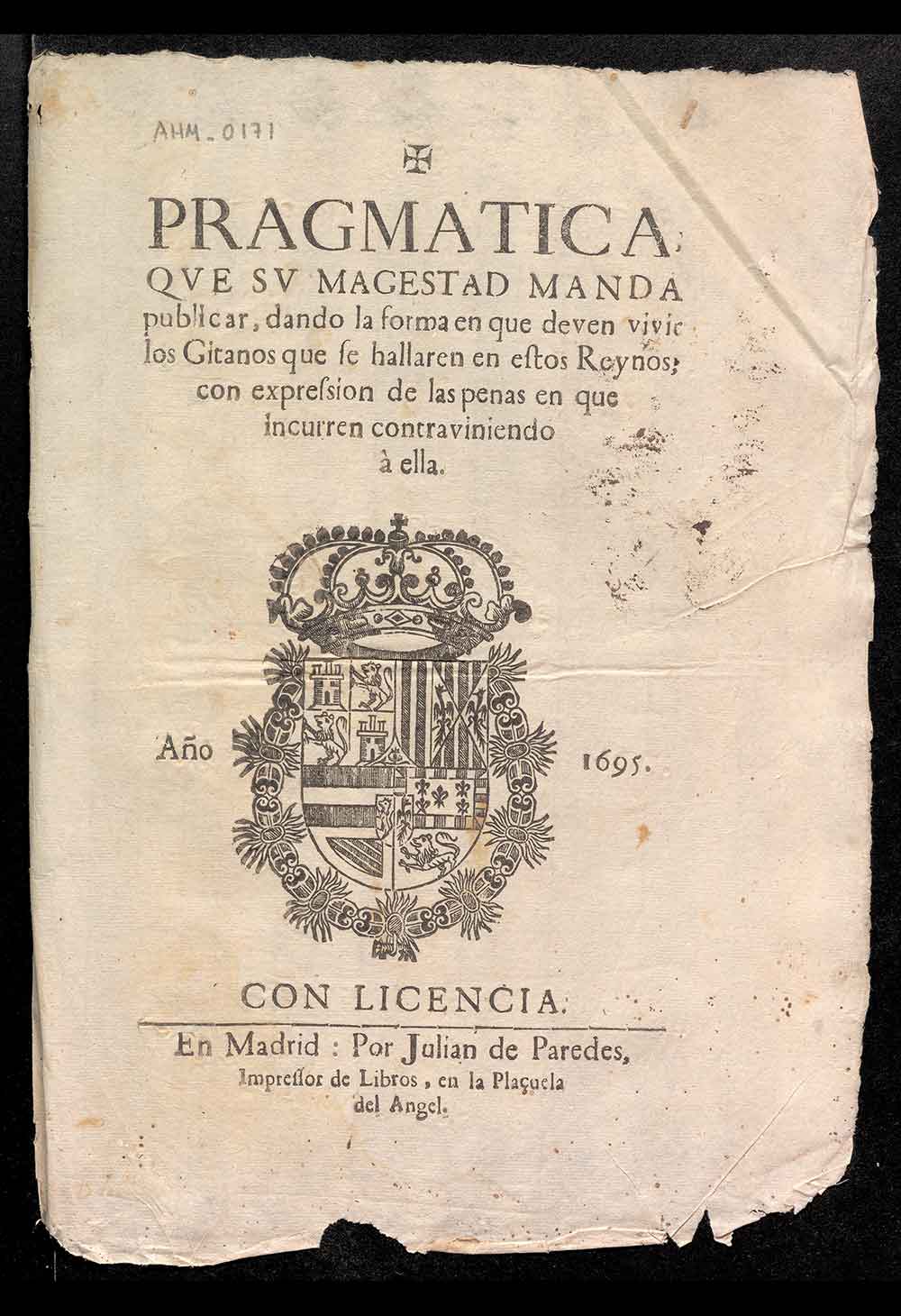 Pragmática de Carlos II que manda publicar, dando forma en que deben vivir los gitanos que se hallaren en estos reinos, con expresión de las penas en que incurren contraviniendo a ella.