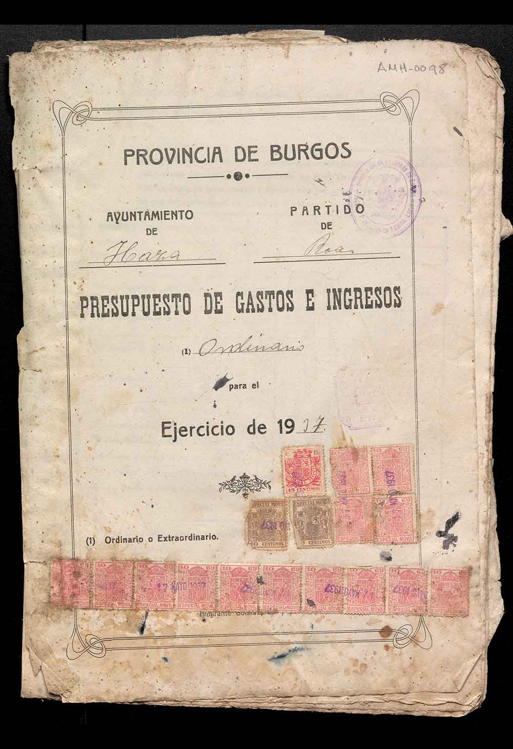Presupuesto de gastos e ingresos ordinario para el ejercicio de 1937 del Ayuntamiento de Haza.