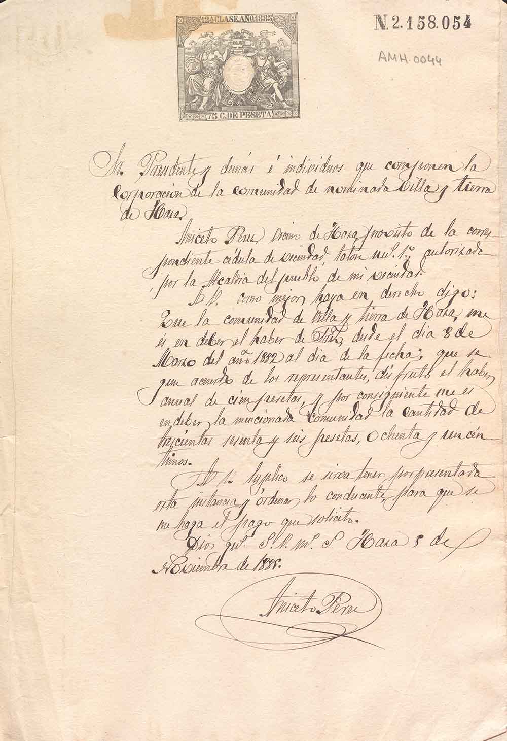 Reconocimiento de deuda de la comunidad a un vecino.